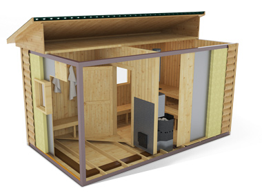 3-слойная каркаская конструкция обеспечивает долговечность и мобильность бани.