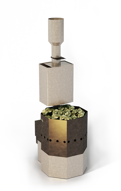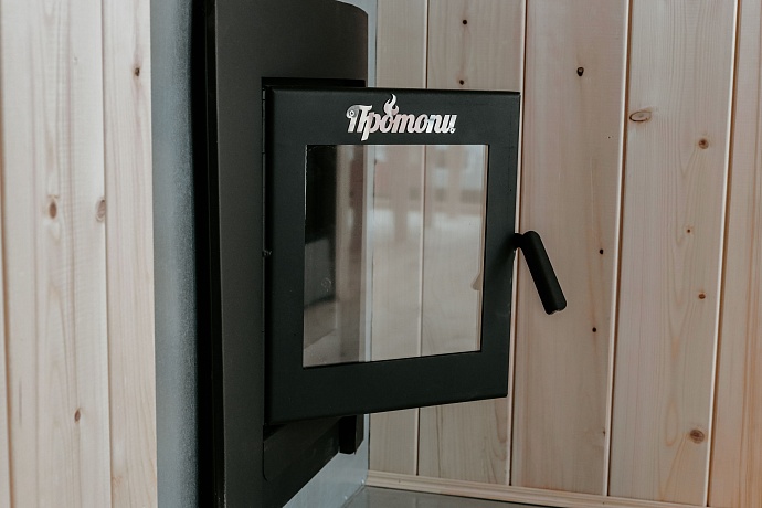 Уникальная печь собственной разработки связана с циркуляцией теплого воздуха и обогревом пола. Тепло распространяется от печи по всей бане.