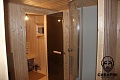 Освещение в каждом отделении - установлены банные стеклянные светильники. В предбаннике розетка. Вся электрика проведена через кабель-канал и подключена через автоматы 16 А - на свет, 16 А - на розетку. Кабель-канал и все комплектующие имеют цвет дерева. |