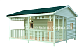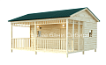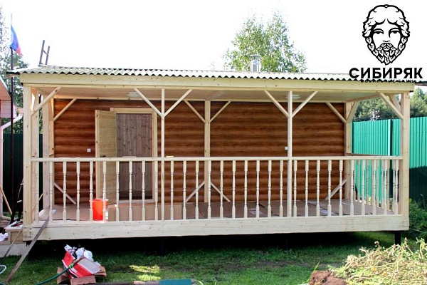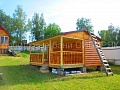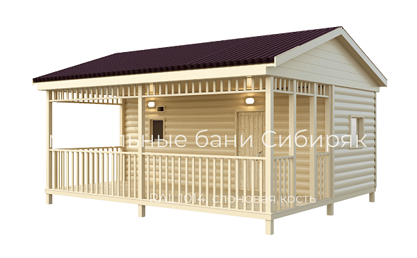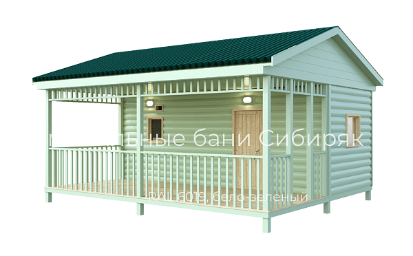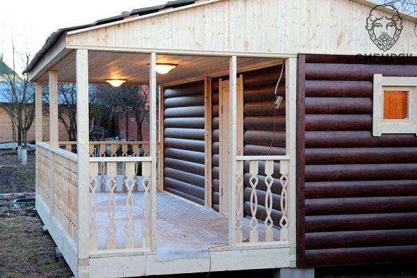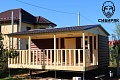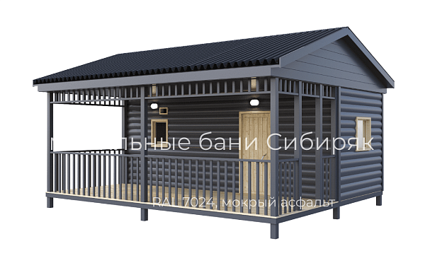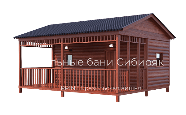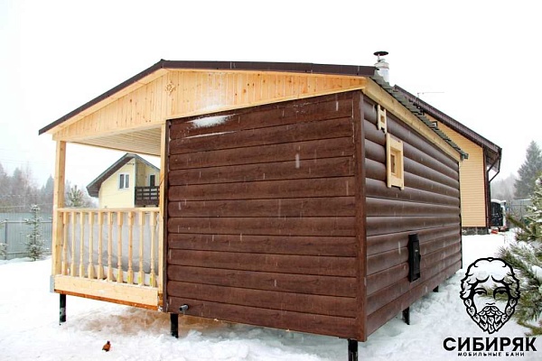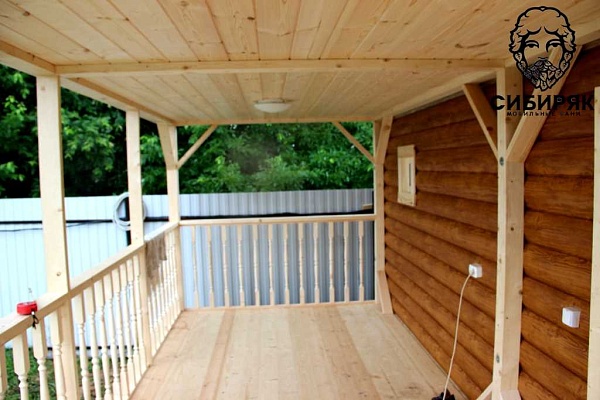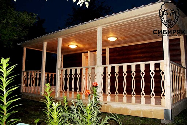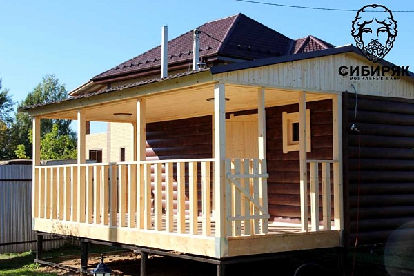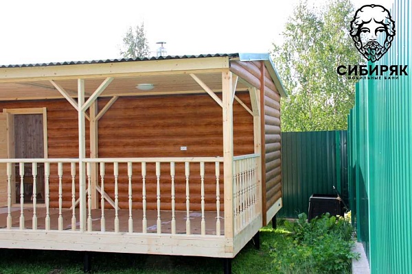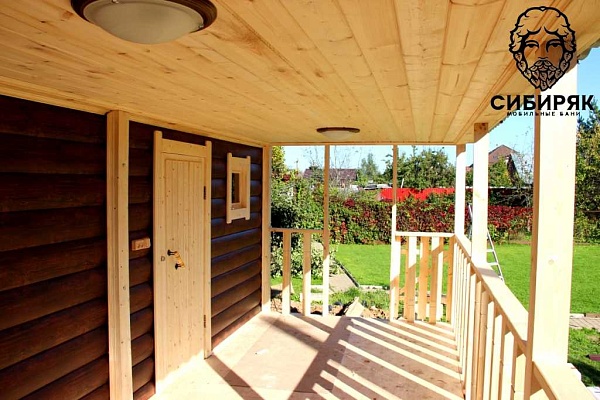 Роскошная баня с террасой. Состоит из двух соединяемых модулей - баня и терраса. Размер модуля с баней - 2,5х6. Терраса - 2,5х6. Каждый модуль доставляется на манипуляторе. На участке происходит соединение. Длина 6 м