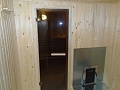 Освещение в каждом отделении - установлены банные стеклянные светильники.В предбаннике поставлена розетка. Вся электрика проведена через кабель-канал и подключена через автоматы 16 А - на свет, 16 А - на розетку. Кабель-канал и все комплектующие имеют цвет дерева. |