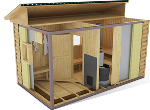3-слойная каркаская конструкция обеспечивает долговечность и мобильность бани.
