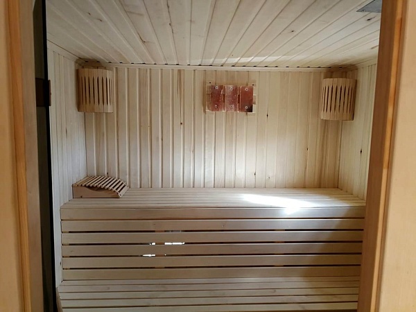Парная: влагозащитные стеклянные светильники – 2 шт, абажуры с гималайской солью – 2 шт Предбанник: стеклянные светильники – 2 шт, двойная розетка – 1 шт, двойной выключатель – 1 шт Вся электрика проведена скрытым монтажом и подключена через автоматы 16 А - на свет, 16 А - на розетку |
