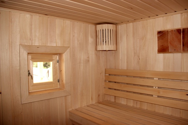 Парная: липа, открывающийся стеклопакет 30х30 мм – 1шт Предбанник: сосна, открывающийся стеклопакет 60х90 мм – 1 шт |