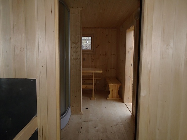 Входная: каркасная, утепленная, обшитая липовой вагонкой 1900х700 мм Парная: дверь для сауны стеклянная, бронза, 3 петли, магнит 1900х700 мм |