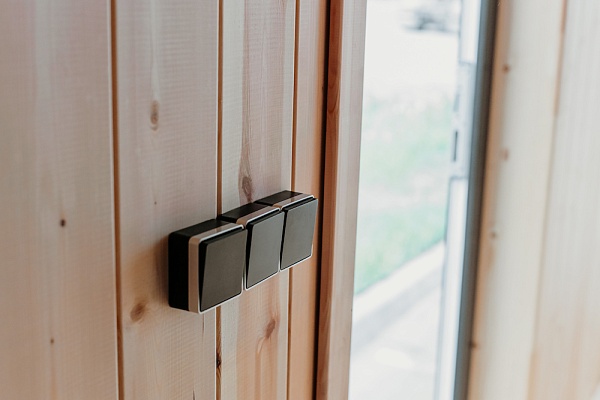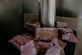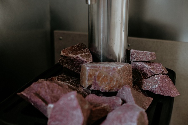 Печь связана с системой теплого пола и циркуляцией воздуха. Баня нагревается со всех сторон — снизу, сбоку и сверху.